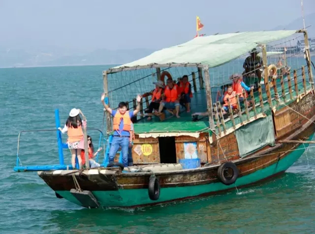 大家站在觀景臺遠眺,欣賞著潔白的沙灘,黛綠的林帶,碧藍的大海,多姿的礁石,迷人的小島,穿梭的漁舟。畫面中構成了動靜交融的南海漁港風光。