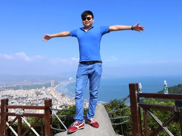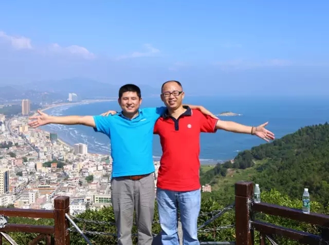 第二天,大家便坐車到觀景臺附近,步行登頂。站在觀景臺,可以看見雙月灣全景,左右兩個半月,據說一個是風平浪靜,一個是波濤洶涌,挺奇特的風景,遠處青山連綿,近處是寬闊的海灣,風景盡收眼底。